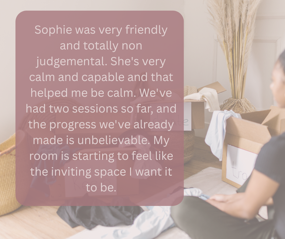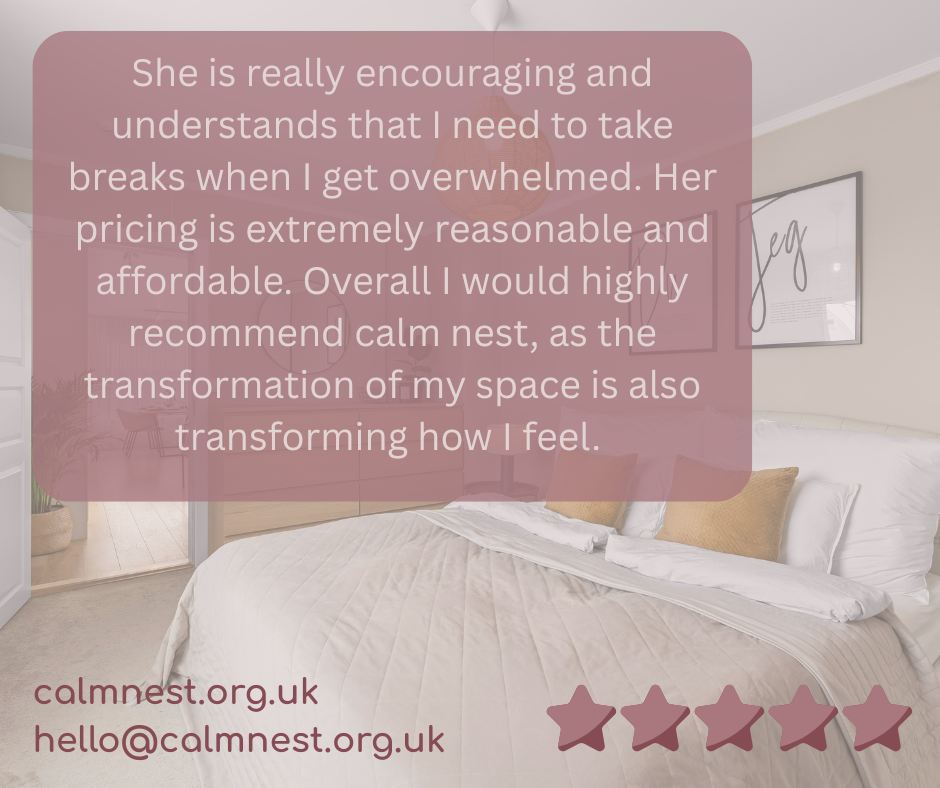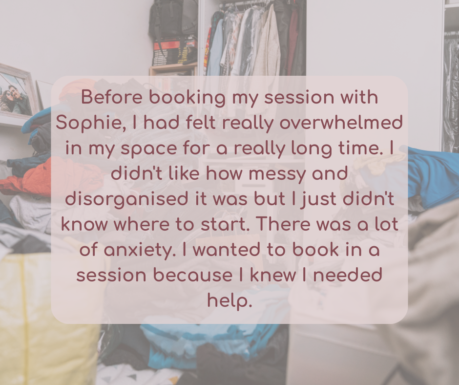 This client shared their experience of decluttering a bedroom that had become stressful to be in. We focused on calm, comfort, and practical systems. Their reflection: “The transformation of my space is also transforming how I feel”.