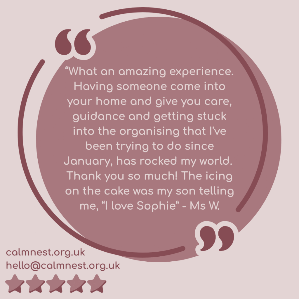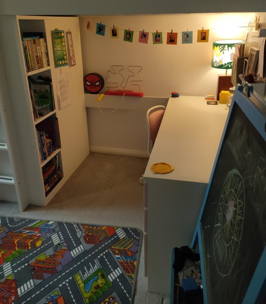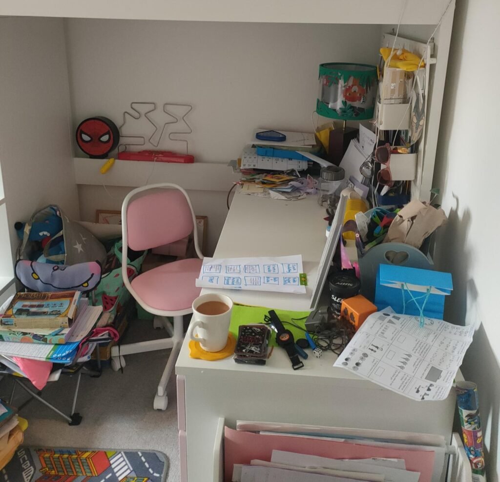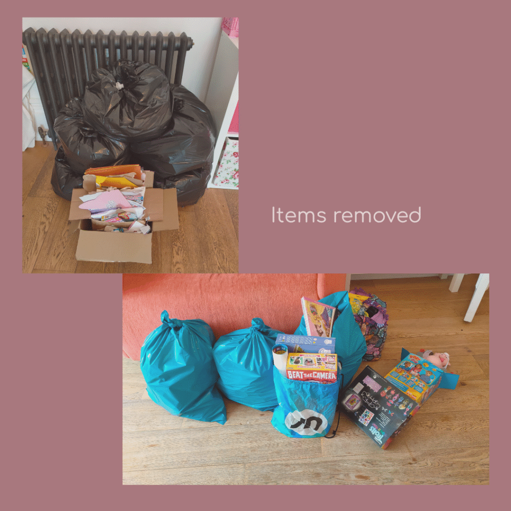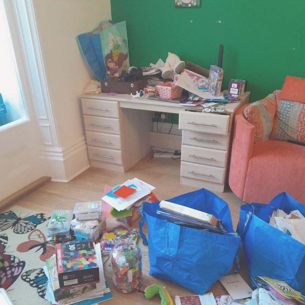 This child’s room had become cluttered and overwhelming. We made space for rest and play, helping them feel more able to enjoy their own space. The best feedback came from the child themselves: “I love Sophie”!
